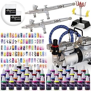 Complete Airbrush Nail Art Kit - 48 Paint 480 Stencil Set best seller